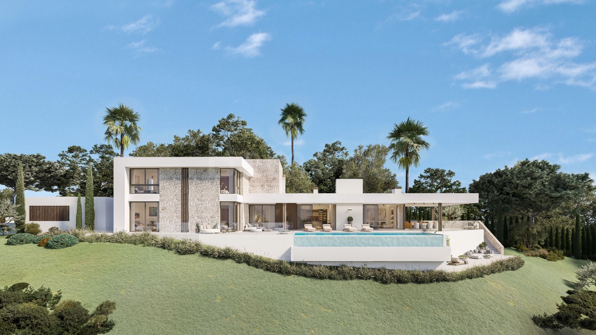 Proyecto de Villas: La Reserva de la Cala Golf. Este espléndido proyecto de nueva villa en venta está ubicado en el lado este de Marbella, en la magnífica zona verde de La Cala Golf Resort, Mijas Costa (Málaga), sur de España. Construida con materiales de alta calidad y diseño moderno, la villa ofrece magníficas vistas al mar Mediterráneo y las montañas circundantes, así como total privacidad, comodidad y un estilo armonioso. Cuenta con 4 dormitorios con suelos de madera y armarios empotrados, 4 baños en suite, un aseo para invitados, cocina abierta totalmente equipada con electrodomésticos Miele, una cocina trasera adicional, lavadero y trastero, terrazas cubiertas y descubiertas, piscina privada de agua salada (11×4m), comedor al aire libre, zonas de descanso y descanso, jardín mediterráneo con palmeras, olivos y cipreses, sistema de riego automático y garaje privado para dos coches. También viene con aire acondicionado F/C, calefacción por suelo radiante en toda la propiedad, ascensor, doble acristalamiento de suelo a techo, sistema de videoconserjería y preinstalaciones para domótica, paneles solares y punto de carga para coche eléctrico. Los extras y características personalizadas como se ilustran en imágenes 3D, como un quinto dormitorio con baño, zona de bienestar con fitness y sauna, sala de cine, bodega, jacuzzi, piscina climatizada, cocina exterior, etc., son opcionales y pueden incluirse como coste adicional (no incluidos en el precio de venta).